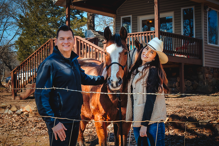 Larry Lundstrom and his wife, Myra, in front of their home in Arkansas.