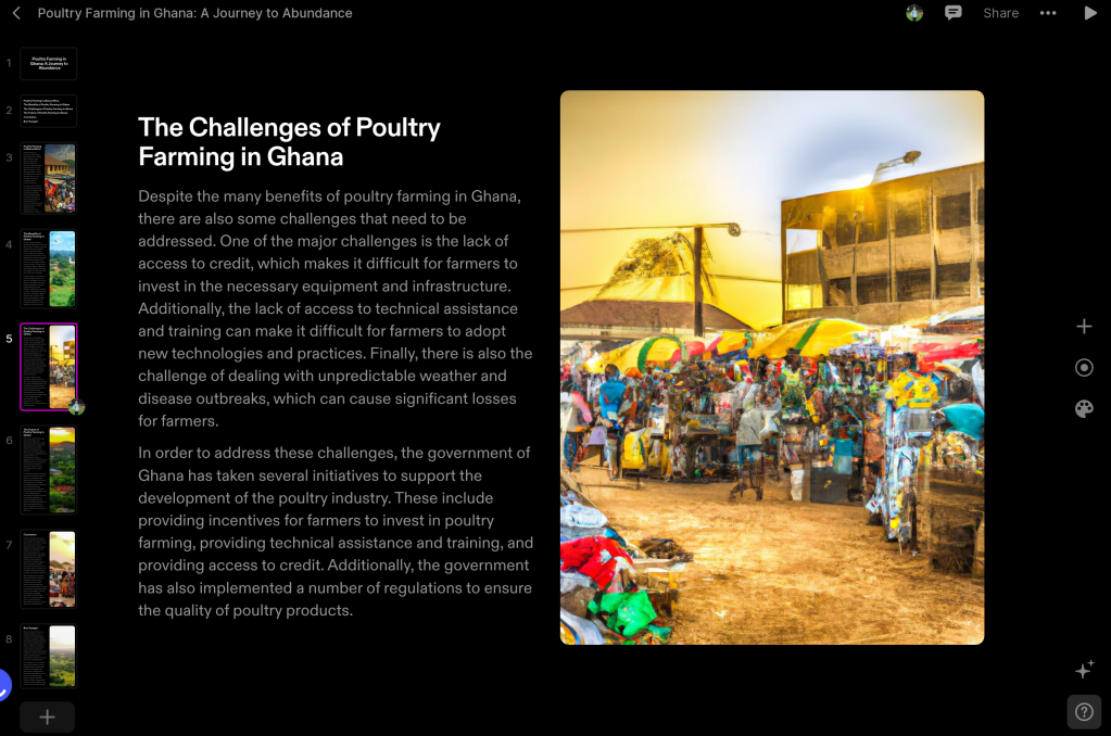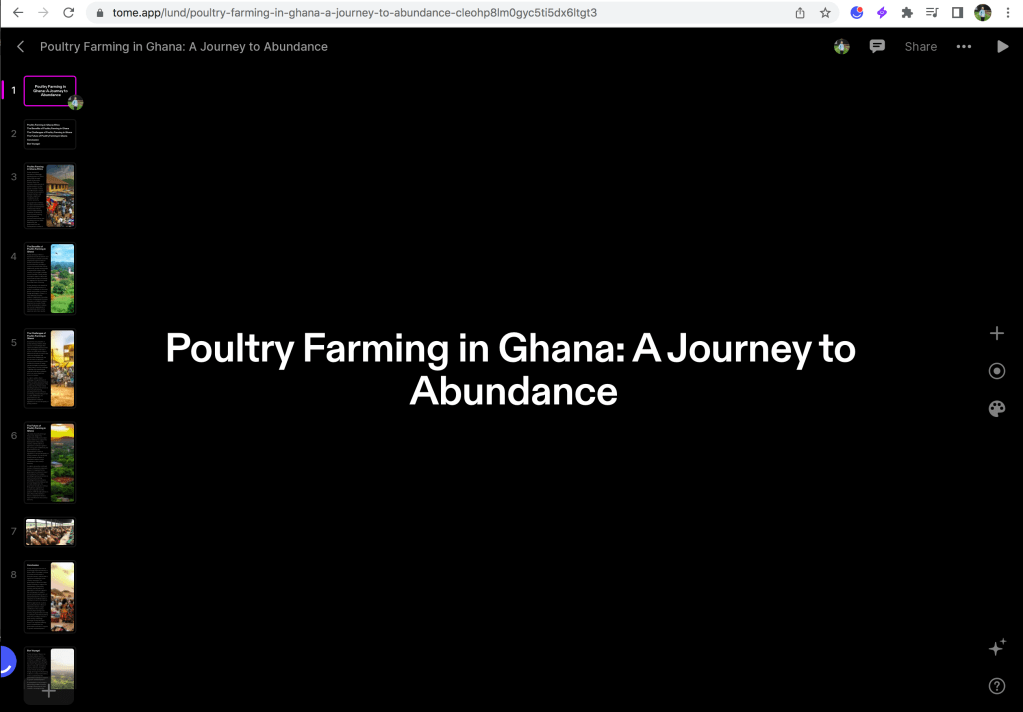 Started research for the Pitch Deck to help grow interest in the Poultry Processing Farm in Ghana. Using Tome.app for slide Deck. Follow the project at UseBubbles.com.