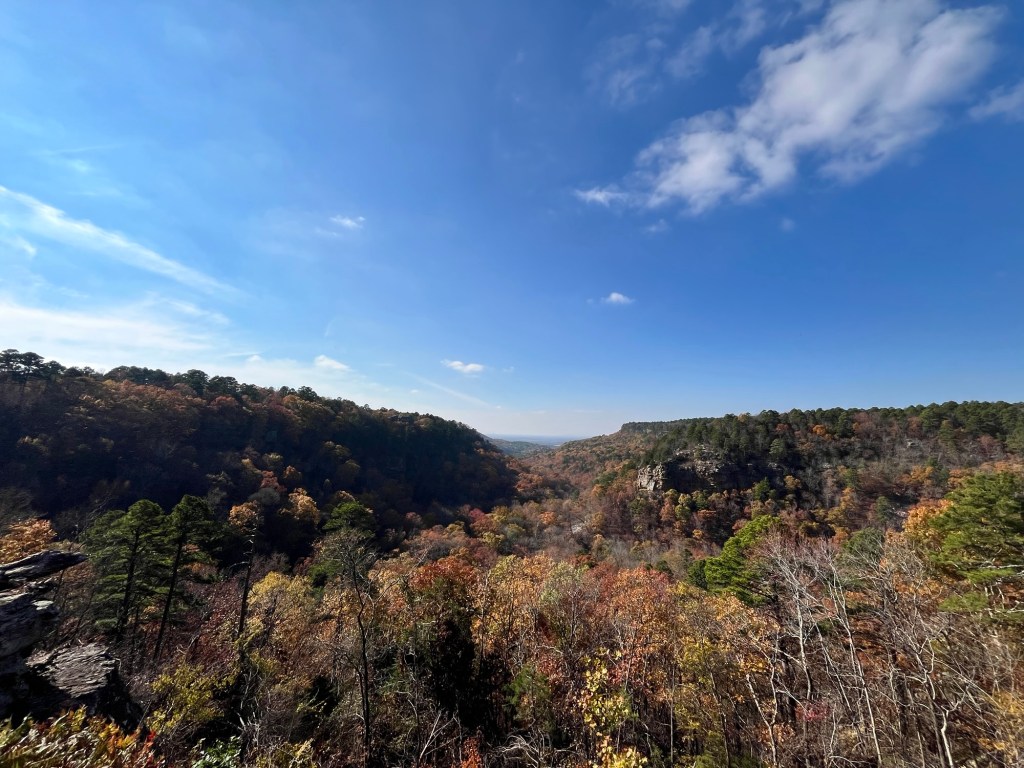 Petit Jean Mountain in Arkansas has a way of making you glad you showed up. The air was crisp, the kind that wakes you up without needing coffee, but the sun brought warmth, cutting through the coolness in the shadows. We started the hike toward Crystal Falls, a trail that winds through towering trees and rocky paths that demand you pay attention.