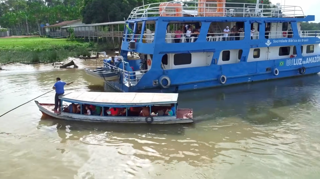 This night was made possible through a partnership between Come and See Foundation, Bible Society of Brazil, and the faithful work of Larry Lundstrom, Global Ambassador—carrying the story of Jesus where roads do not go, but rivers do.