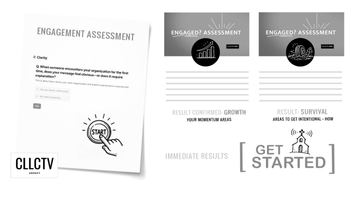 - Take The Engagement Assessment to get an idea of where you are connecting well with you audience and some areas you might need to rebuild, or refresh. And the summary will outline confirmation of stage and phase of organization growth & engagement. (Length: 2-Minutes, 7 Questions, Immediate Result)